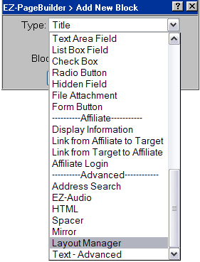 4. Add a text block inside the layout manager. (A title block will work as well).