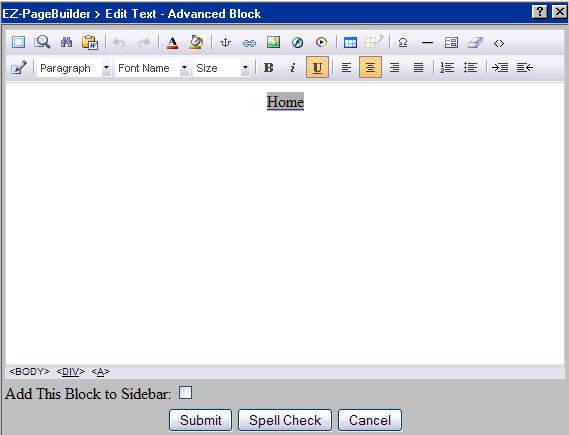 5. In the text block, click the link icon and browse to the page you want it linked to. (For example I linked "home" to index.html).