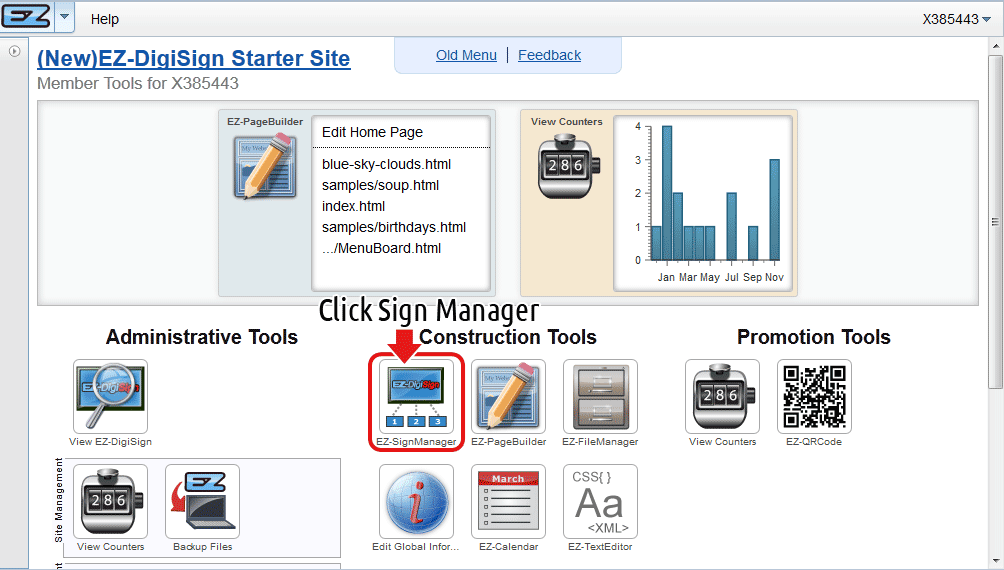 Once you log in, you'll see the Home Screen. Click on EZ-SignManager