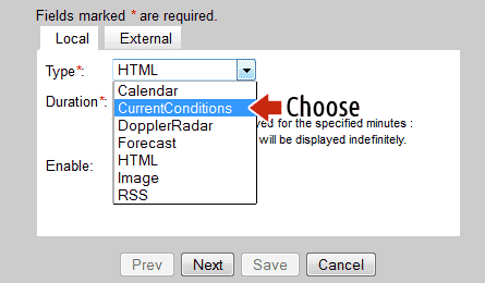 So that's how to add a current weather sign. You can also add other weather signs like Doppler Radar, and 5 day forecast. The most common type of sign will be an image sign. Let's learn about that next....