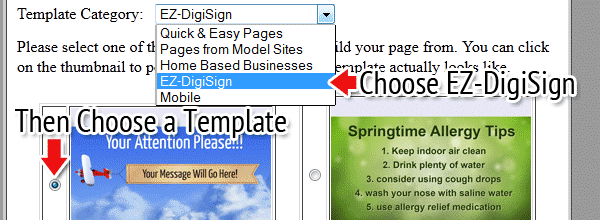 4. Choose EZ-DigiSign. We will use the airplane banner template. To choose another template, click the radio button (the small circle) to it's left.
