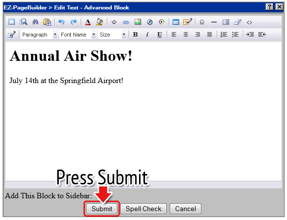 10. Type your new text. Keep your text short. This will make it easy for people to read quickly. This particular sign is meant for very brief messages. If you need more text we recommend using a different template. When finished, push Submit.