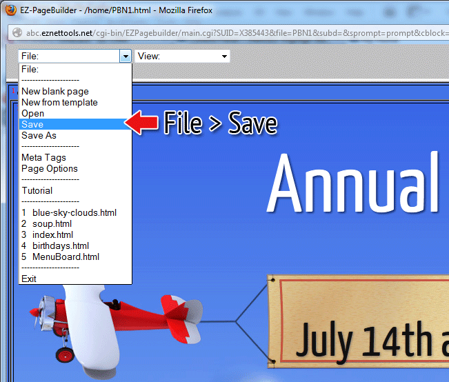 12. When Your done previewing your sign, go back to PageBuilder, and click File > Save.