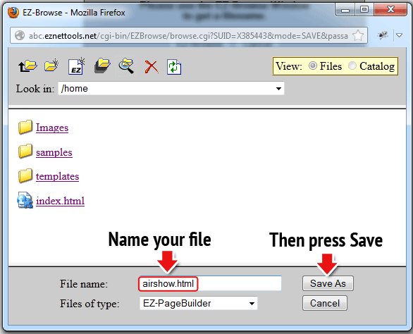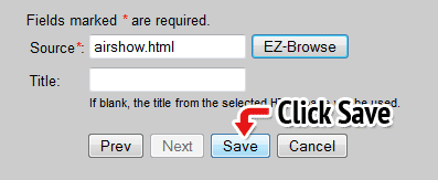 13. Save your file as airshow.html and push Save As. Note: You can name your file anything you want, but make sure you put .html at the end. This will save it as a webpage.