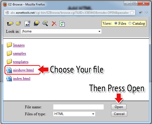 19. Click airshow.html (or whatever you named your file) and then press Open.
