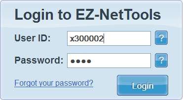 Logging into EZ-Nettools®Logging in is very simple. All you need is your User Id (i.e. X123456) and your password. If you've forgotten your passwords, simply enter your User ID and your password will be sent to the email address on your account. If you've forgotten your User ID, call us at 800-627-4780. 1. Go to http://login.eznettools.com