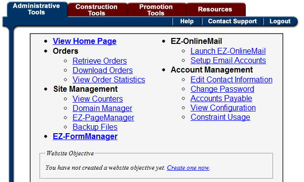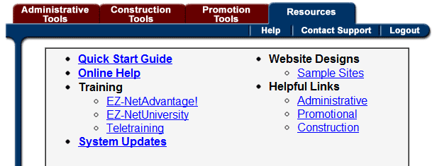 EZ-NetTools® Main Menus OverviewThe EZ-NetTools Menu is divided into 3 major categories: Administrative, Construction, & Promotion, to help you find tools more easily.