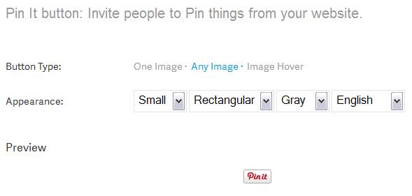 - On the Pinterest Pin It page (link above) you can edit the appearance and preview the button.