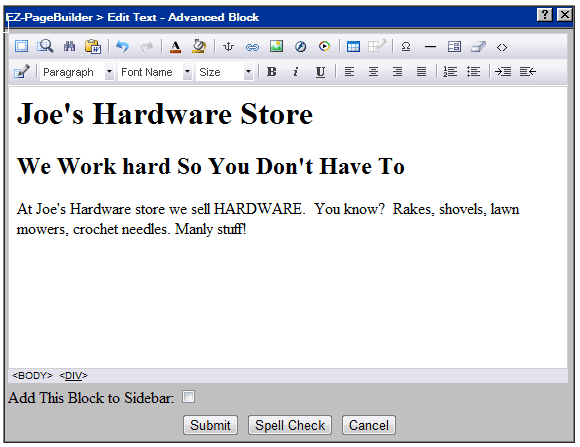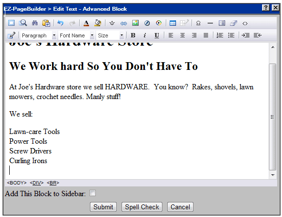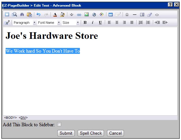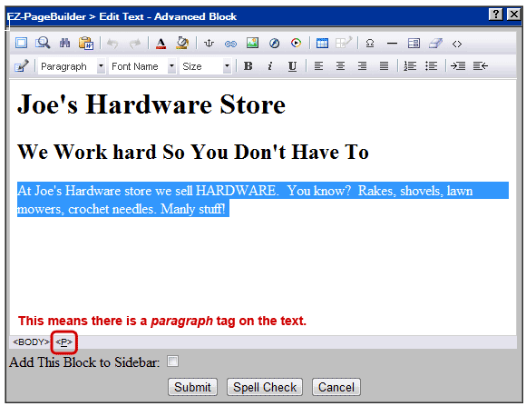 You might think that nothing happened, but it did. This put a paragraph tag on the text. If your site has a CSS Stylesheet it will make the text look consistent.