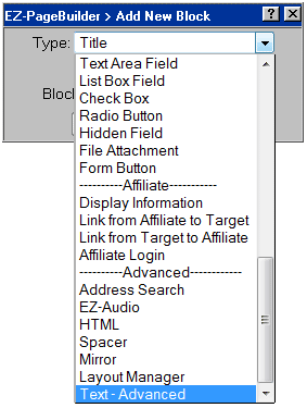 1. Add a Text Advanced block To Add a Text advanced block click Add or the green plus to add a new block. Then choose Text Advanced